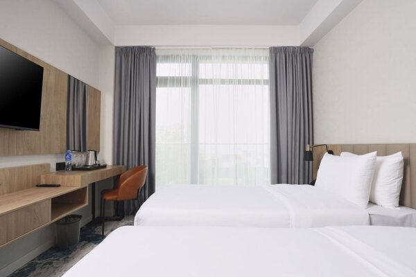 Пожалуйста, обратите внимание, что въезд в отель осуществляется через шлагбаум, установленный на территории РЖД-инфраструктуры. Стоянка допускает 15 минут бесплатно времени на въезд/выезд. По истечении 15 минут становится платной.