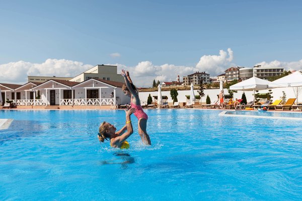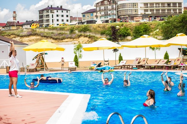 детский бассейн — открытый, вода пресная, подогреваемый, горки, пользование бассейном входит в стоимость