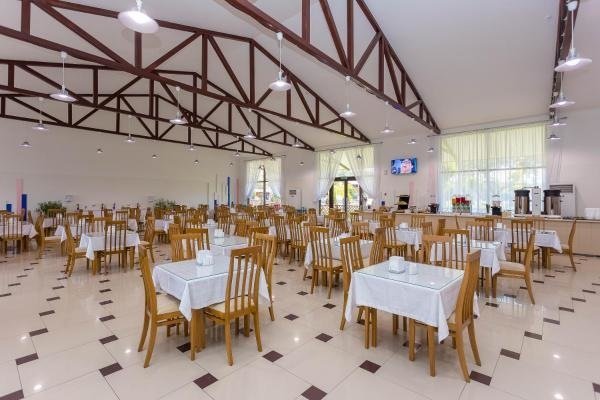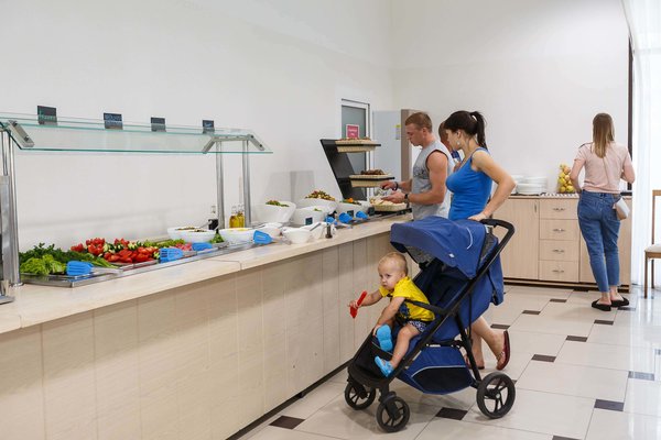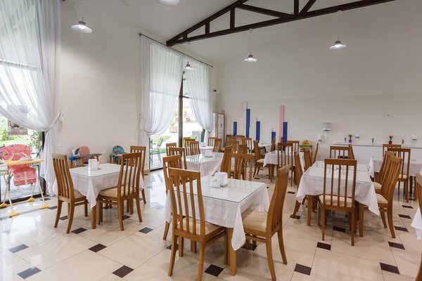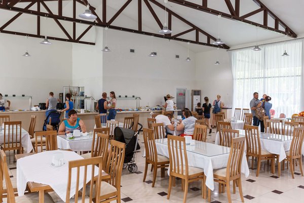 Обеденный зал — в здании ресепшена, шведский стол, работает с 7-00 утра до 21-00 вечера