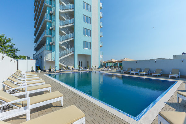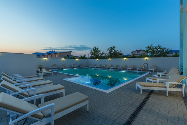 Отель расположен на первой береговой линии, от собственного пляжа вас отделяет лишь золотые дюны. На территории отеля расположен открытый подогреваемый бассейн с зоной отдыха и летним баром, располагающий к спокойному расслаблению после трудовых будней. Нахождение вдали от центра поселка позволяет провести отпуск неспешно и тихо.