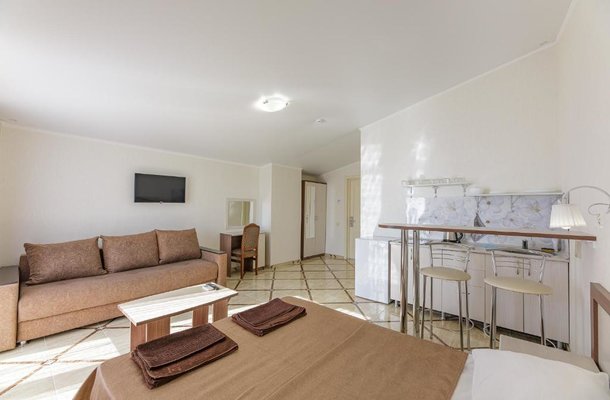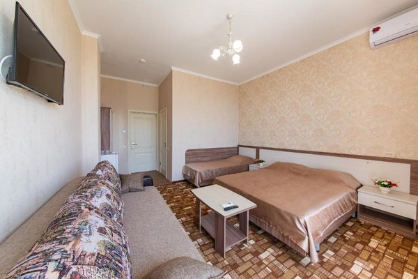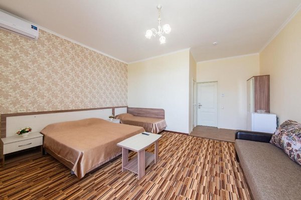 Самолетом до аэропорта г. Анапы, далее на маршрутном такси №127 до остановки «Аквапарк», далее на маршрутном такси №114 до остановки «Прометей», далее 550 м до гостевого дома.