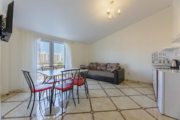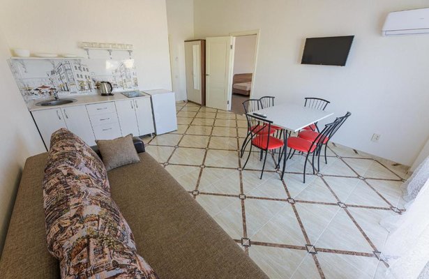 На территории Гостевого дома детская площадка, а рядом всевозможные детские развлечения, до аквакомлекса «Бора-Бора» и дельфинария 10 мин. езды.
