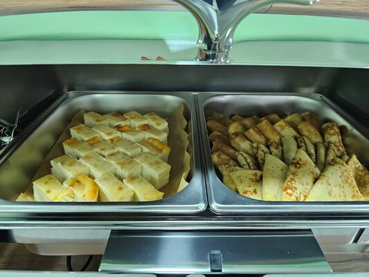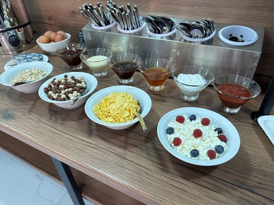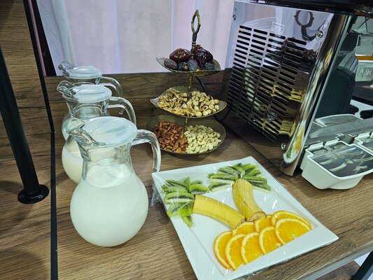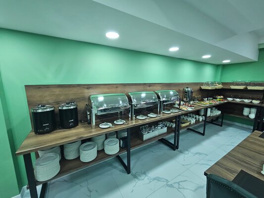 Уютный обеденный зал отеля приятно удивит гостей. А квалифицированный персонал кухни порадует разнообразием завтраков и не оставит равнодушным даже гурманов.