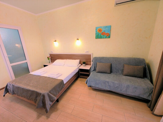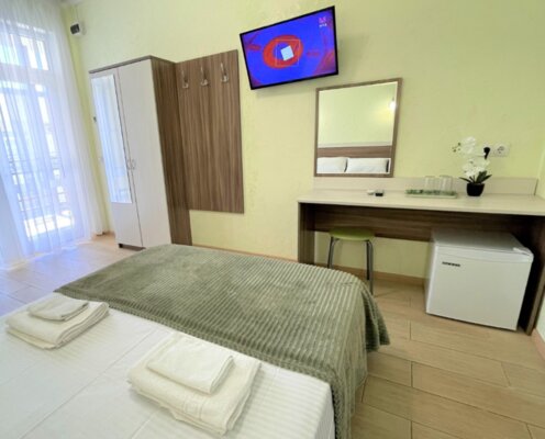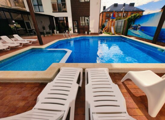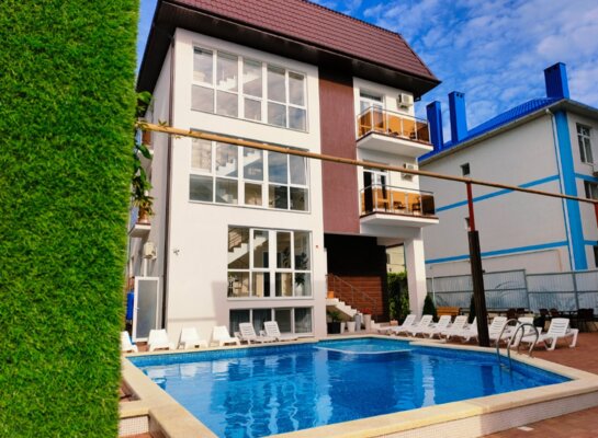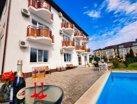 Самолетом до аэропорта г. Анапа, далее на маршрутном такси 113 до остановки «Аквапарк», далее на маршрутном такси 114 до остановки «Юбилейный», далее пройти 890 м пешком до отеля.