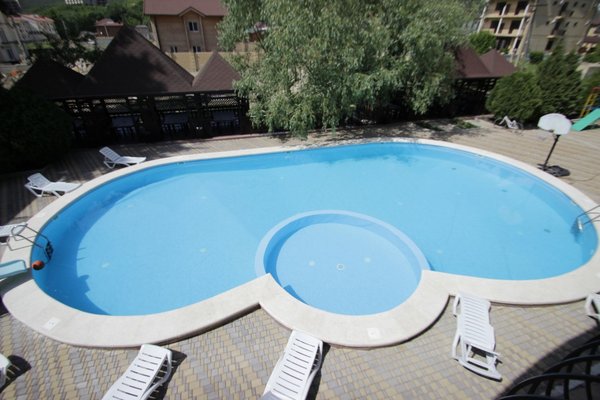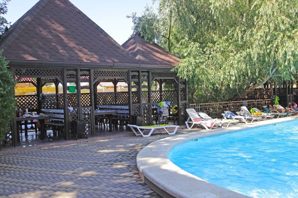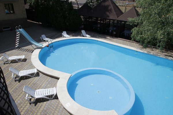 стоянка под наблюдением, бассейн, комфортные номера, чистый и уютный двор, своя столовая, трансфер до пляжа