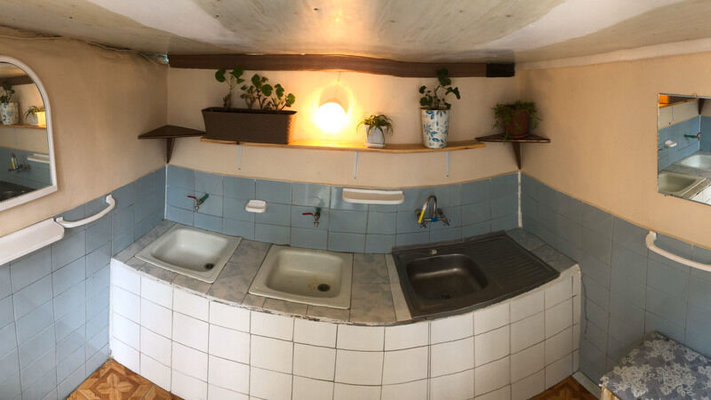 Гостевой дом имеет небольшую территорию, которая включает в себя номерной фонд, зону барбекю, обеденную зону, две общие летние кухни, места для стирки, мытья рук и посуды, а также общие туалеты и душевые для номеров эконом-класса.
