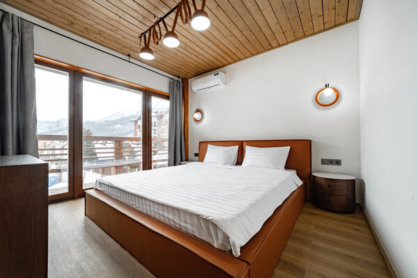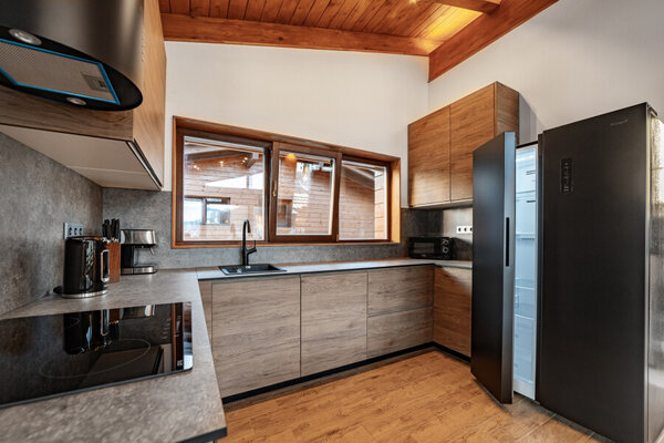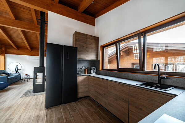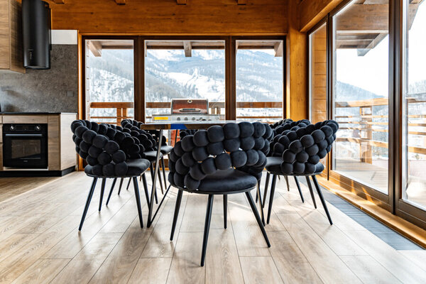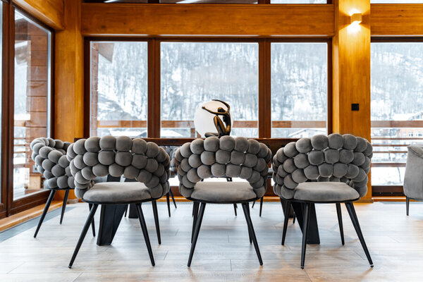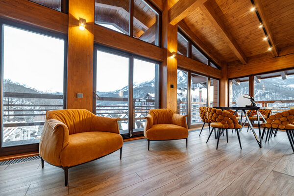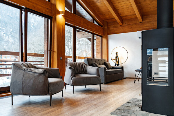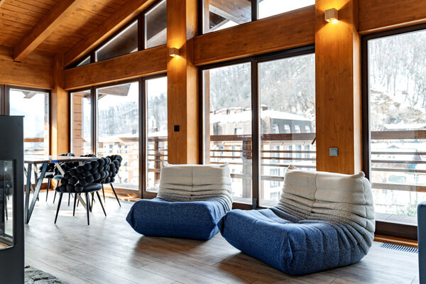 Также на территории расположены три просторных коттеджа-шале. Каждый из них включает гостиную, три спальни и четыре санузла. Внутри шале всё продумано до мелочей: уютная мебель, кухонная техника, а также различные приборы для обеспечения максимального комфорта, включая все необходимое для длительного проживания.