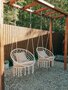 На территории обустроена терраса с обеденным столом, зона барбекю с мангалом и решетками, и подогреваемый бассейн с подсветкой. Для расслабления на свежем воздухе предусмотрены подвесные качели и кресло-кокон.