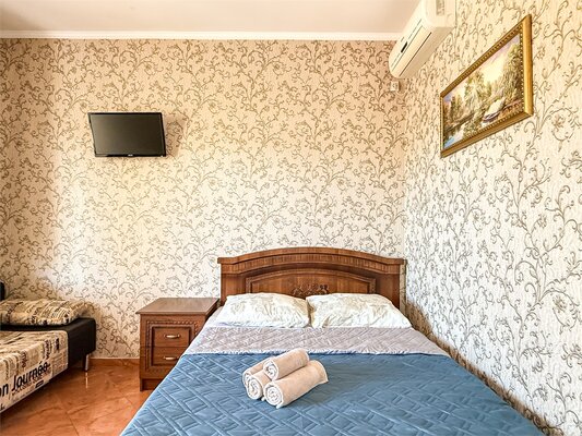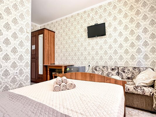 Допускается проживание с собаками мелких пород, чей вес не превышает трех килограммов, за дополнительную плату в размере 500 ₽/сутки.