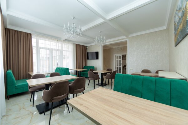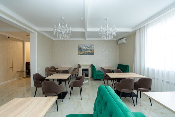 На территории «Джанго» работает уютная столовая с просторным обеденным залом, где гости могут насладиться разнообразными блюдами. Для любителей водных процедур открыт подогреваемый бассейн, окруженный зеленой зоной, где можно расслабиться на удобных лежаках.