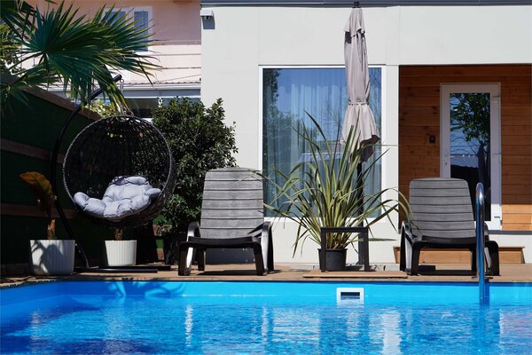 Общий сезонный бассейн подогревается с июня по сентябрь.