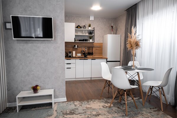 Каждый апартамент оснащен всем необходимым: плитой, холодильником, микроволновой печью, кондиционером, кофемашиной и телевизором. В вашем распоряжении собственная терраса, где вы сможете насладиться свежим воздухом и прекрасными видами.