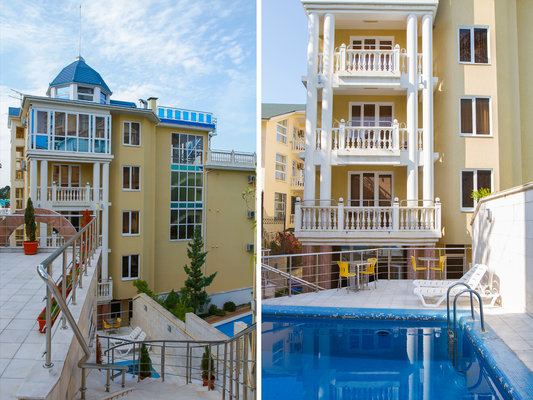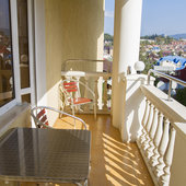 К услугам наших гостей закрытая благоустроенная территория отеля, оборудованная шезлонгами, столиками для отдыха.