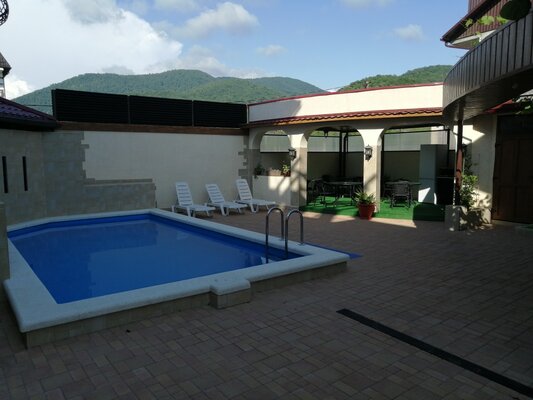 Гостевой дом находится в шаговой доступности от чистейшей реки Псезуапсе. В непосредственной близости расположены: магазин «Пятерочка», аквапарк «Наутилус», парк отдыха, центральный рынок, автозаправка, столовые и кафе, магазины пляжных принадлежностей и курортных товаров. До пляжа всего 15-20 минут пешком по ровной дороге без ступеней.