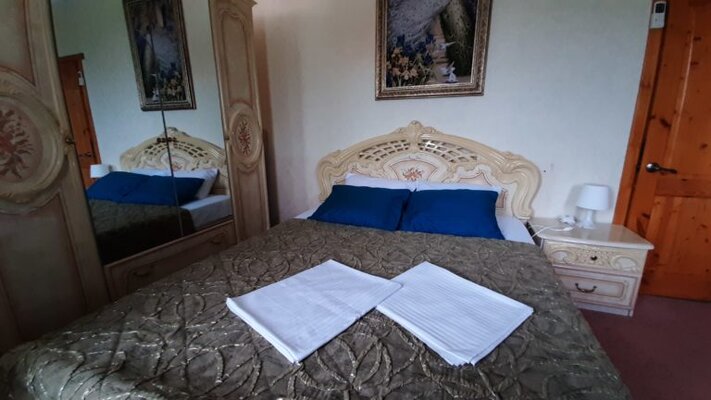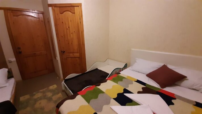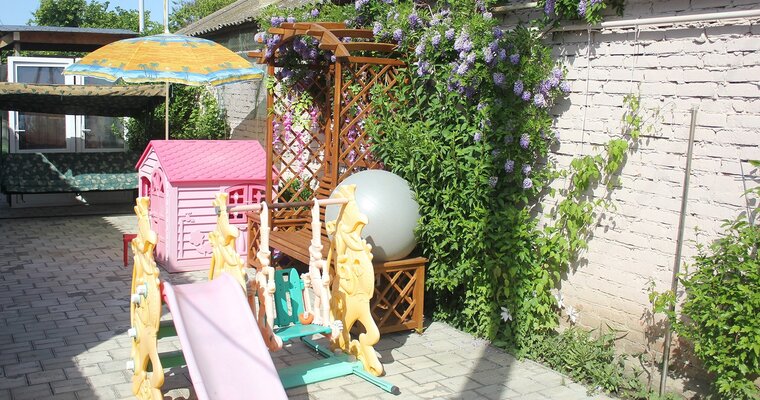 Для детей в Гостевом доме есть игровая зона с горкой, качелями, двумя домиками.