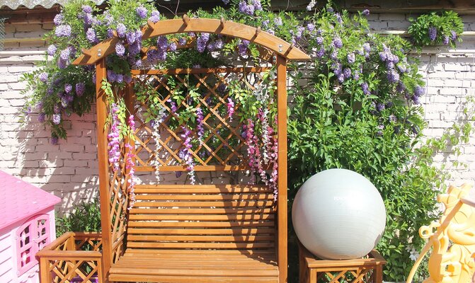 Для вашего отдыха в Гостевом доме для приема пищи оборудована беседка у водопада, утопающая в зелени и цветах.