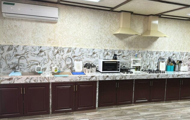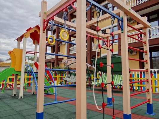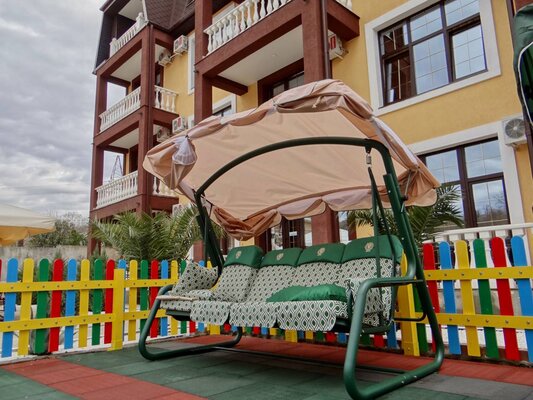 На благоустроенной территории предусмотрено множество приятных зон: для самых маленьких гостей оборудована игровая детская площадка, для любителей кулинарии доступна общая кухня, а для душевных вечеров на свежем воздухе — мангальная зона с уютными столиками под зонтами. Для вашего удобства на всей территории работает Wi-Fi и есть бесплатная парковка. Среди дополнительных услуг – прачечная и возможность организации экскурсий.
