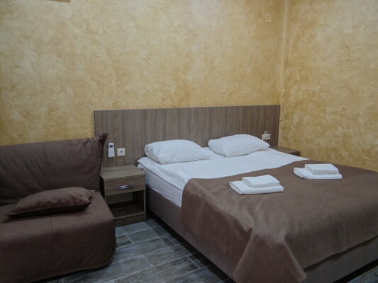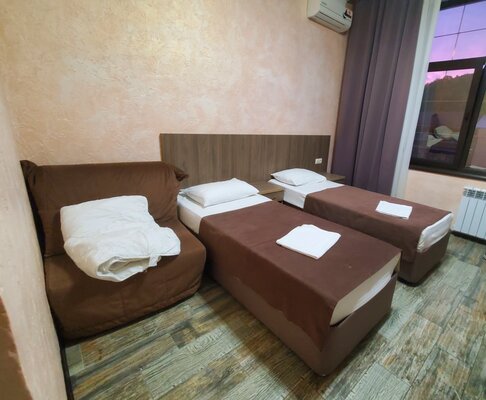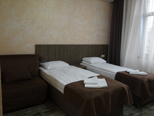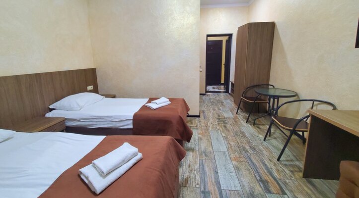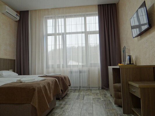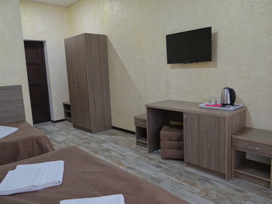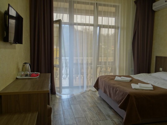 Каждый номер гостевого дома «Элион» создан для вашего удобства и оснащен всем необходимым для полноценного отдыха. К вашим услугам современная мебель, кондиционер, ЖК-телевизор, мини-холодильник, электрочайник, а также собственный санузел с душем и феном.