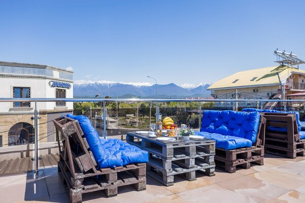 Поездом до ж/д вокзала Адлер, далее автобусе №551,550 до остановки «Совхоз Россия», затем пройти 213 м до мини-отеля.