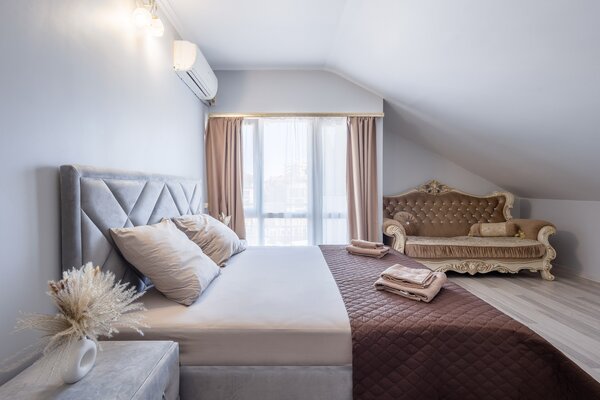 Каждый номер оснащен всем необходимым для комфортного отдыха: удобными кроватями, кондиционером, холодильником, телевизором, феном, принадлежностями для душа и бесплатным Wi-Fi.