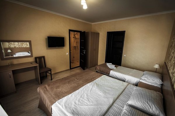 Во всех номерах имеется телевизор со спутниковыми каналами и отдельная ванная комната. За пользование парковкой и интернетом плата не взимается.