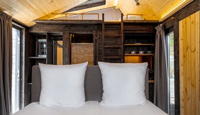 Уединенность глэмпинга, скрытого в объятиях национального парка, позволит вам насладиться спокойствием и размеренностью. Олимпийская деревня находится всего в получасе ходьбы, а в двух шагах от вашего коттеджа раскинулись одни из самых живописных горнолыжных склонов страны.