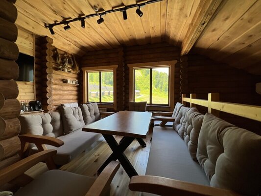 Аренда большой бани для 6 человек. В аренду входит купель холодная, парная, зона отдыха.