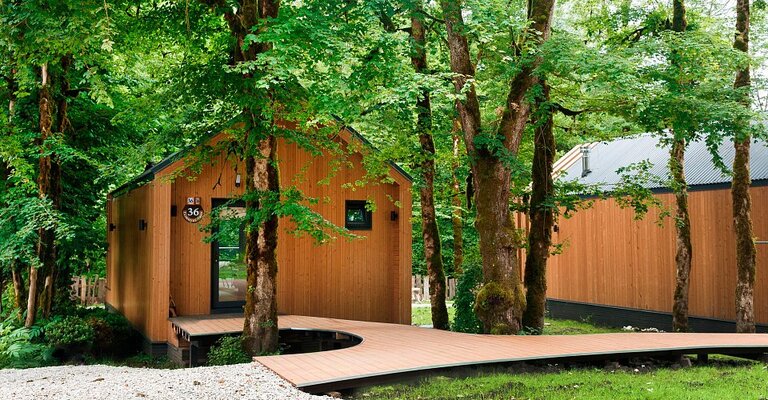 В живописном Воронцовском парке, у изумрудных вод горной реки Большая Хоста, раскинулся роскошный глэмпинг «Енот». Здесь гостей ожидает отдых высшего уровня, сочетающий в себе комфорт и первозданную красоту природы.