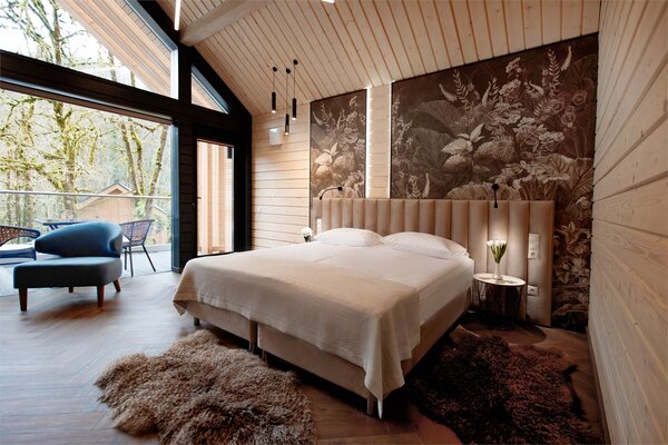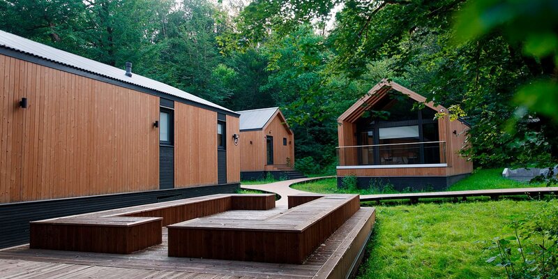 Погрузитесь в реликтовый лес, где расположились девять уютных барнхаусов и три просторных тент-хауса, оборудованных экологичной мебелью. К вашим услугам теплые полы, кондиционеры, живописные камины и все удобства, превращающие отдых в настоящее блаженство.