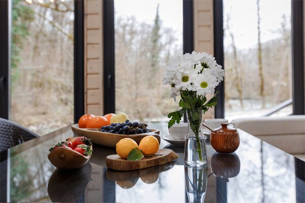Глэмпинг «Енот» предлагает вкусные и полезные завтраки с 9:00–10:30. В меню представлены такие блюда, как яйца с авокадо, нарезанным тонкими ломтиками, домашние овощи и свежая зелень. Также гости могут попробовать каши, творог и круассаны. Вегетарианский завтрак готовится по запросу.