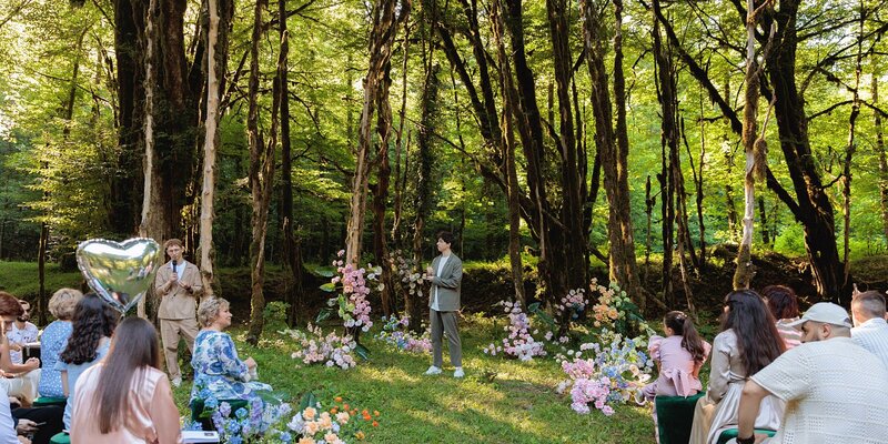 Глэмпинг «Енот» предоставляет место для проведения свадьбы на природе. Благодаря комфортному и уютному скандинавскому стилю, гостям гарантирован комфортный отдых в окружении реликтовых лесов и мягкого климата Сочи. Отзывчивый персонал, заботливо помогающий с подготовкой к празднику, позволит гостям насладиться свадьбой, не беспокоясь о деталях.