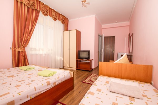 Отель «Эрос» расположен в поселке Витязево, в 800 м от пляжа Витязево. К услугам гостей номера с общим лаунджем, бесплатная частная парковка и принадлежности для барбекю. Во всех номерах есть телевизор с плоским экраном и кабельными каналами, а также собственная ванная комната. К услугам гостей круглосуточная стойка регистрации, трансфер от/до аэропорта, общая кухня и бесплатный Wi-Fi на всей территории.
