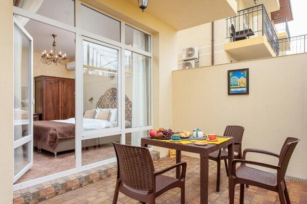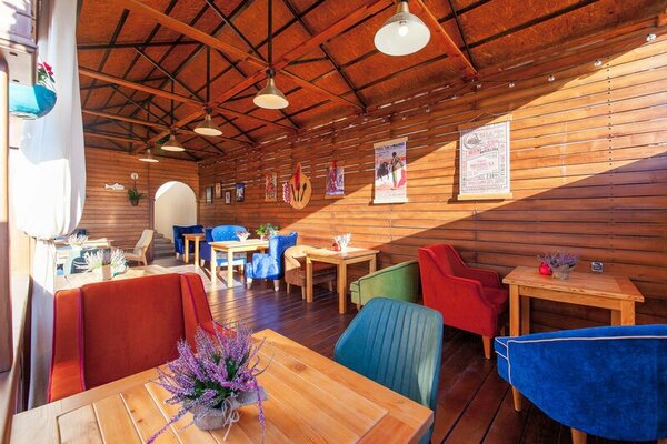 На территории бутик-отеля располагается уютное кафе, где проходят завтраки.