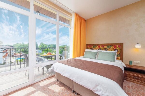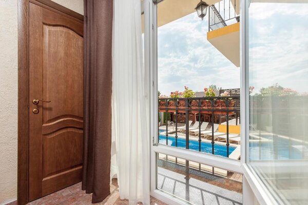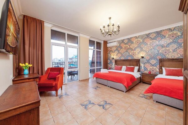 Отель занимает уютную закрытую территорию с четырехэтажным зданием. К вашим услугам комфортабельные двух- и трехместные номера с индивидуальными ванными комнатами, кондиционером, телевизором с плоским экраном, электрочайником и феном.