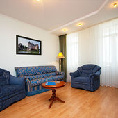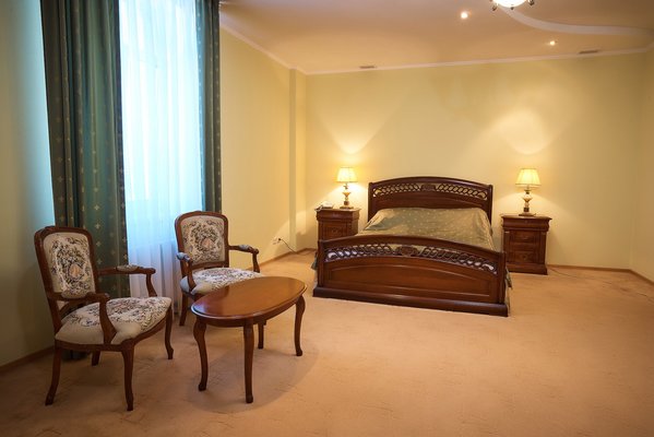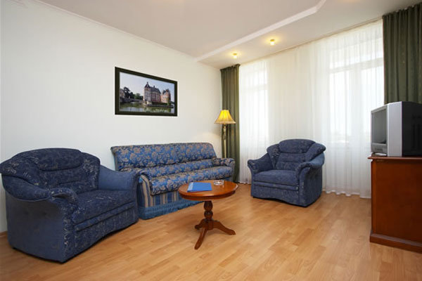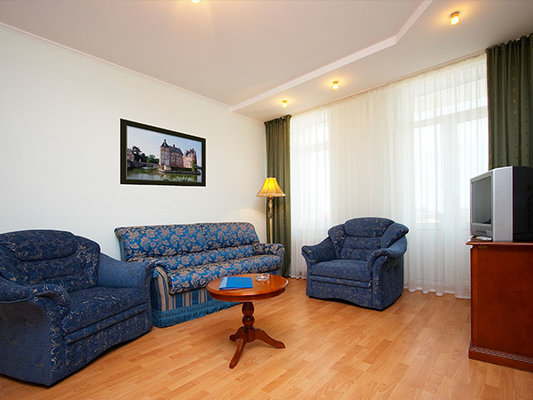 Для самых взыскательных клиентов отель предлагает улучшенные номера категории «Де Люкс» и «Апартаменты», с собственной меблированной террасой и мини-баром с прохладительными напитками. Номера состоят из: спальной комнаты, кабинета, гостиной, кухни, зимнего сада с плетеной мебелью, 2 с/у: гостевой и полный. В каждой ванной комнате есть душ, фен и бесплатные туалетно-косметические принадлежности. Кроме того, гости могут воспользоваться сейфом, охраняемой парковкой, услугами тренажерного зала, бесплатным Wi-Fi, сауной.