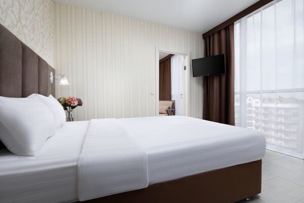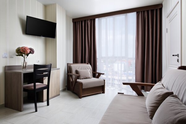 - современный телевизор с плоским экраном для приятного вечера;
