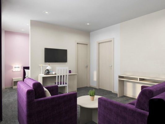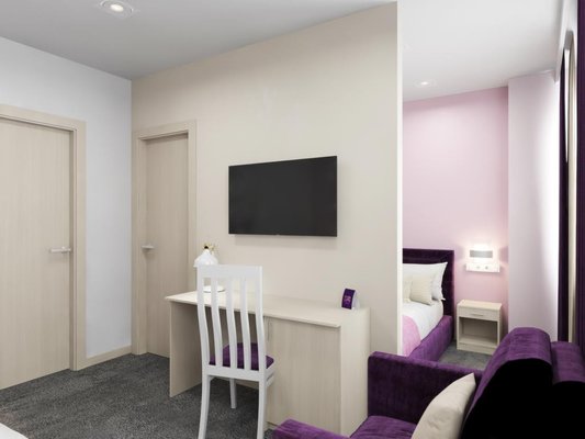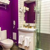 Во всех номерах установлен рабочий стол и шкаф для одежды, в числе удобств холодильник и телевизор с плоским экраном и кабельными каналами. В распоряжении гостей собственная ванная комната с душем и феном.