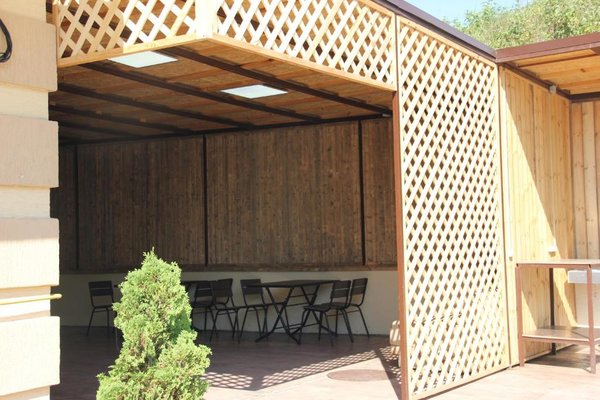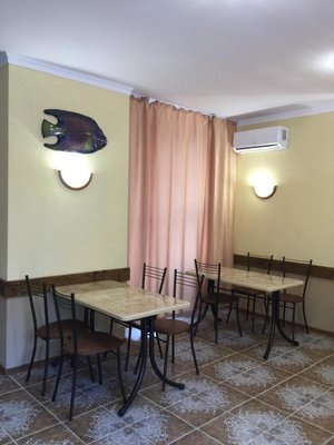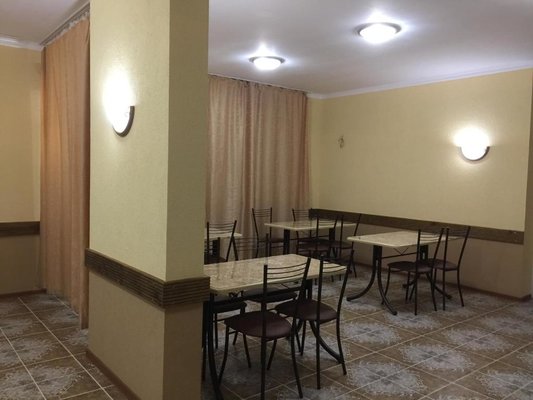 На облагороженной территории расположена обеденная зона, где можно приготовить шашлыки или овощи, а после насладиться им. Также рядом есть недорогая столовая, где можно вкусно покушать. По запросу можно организовать доставку различных блюд в номера.