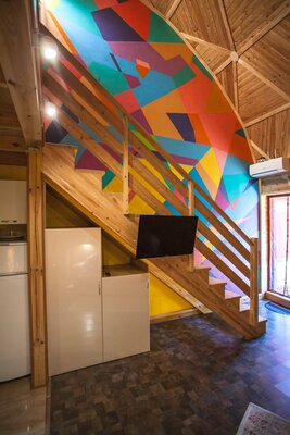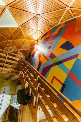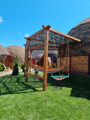 К вашим услугам три купольных дома, два стильных номера, украшенных оригинальными граффити, и просторное двухэтажное бунгало. В бунгало на первом этаже вы найдете гостиную с удобным диваном, полностью оборудованную кухню и санузел, а на втором — уютную спальню с комфортабельной кроватью.