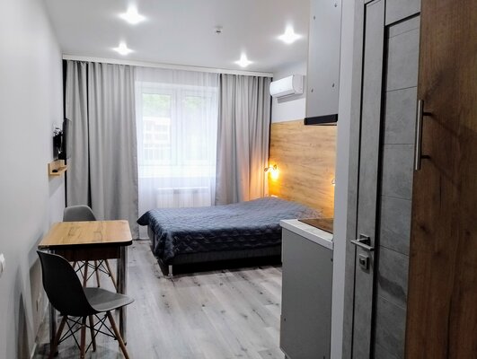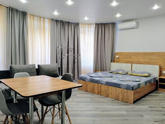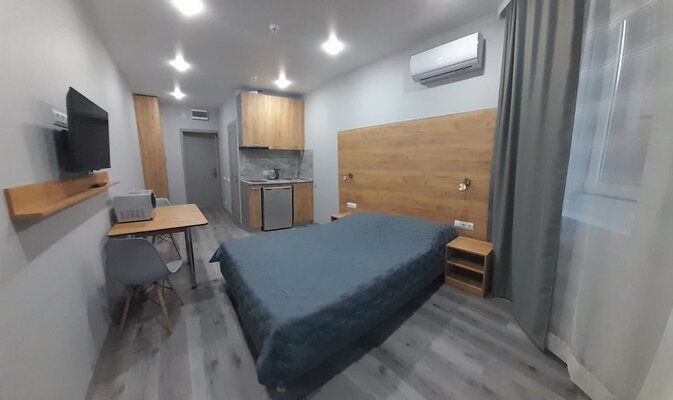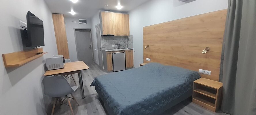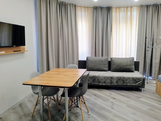 Апартаменты оформлены в современном стиле. В них есть все необходимое для комфортного отдыха: оборудованная кухня с бытовой техникой и посудой, удобная мебель, Smart TV, Wi-Fi, кондиционер.