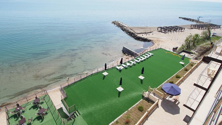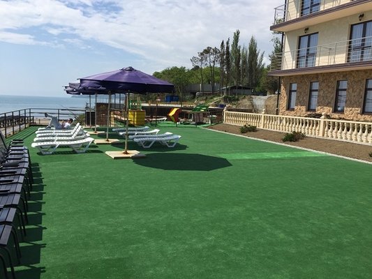 Пользование закрытой парковкой, а также шезлонгами на пляже и террасе входит в стоимость проживания.