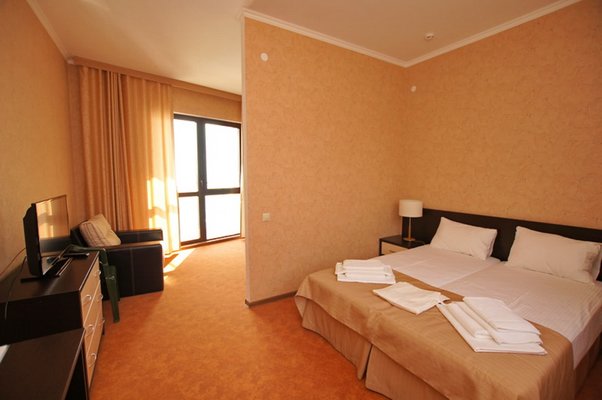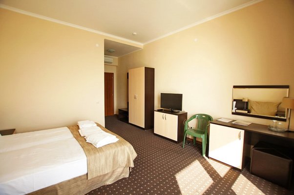 Отель имеет 5 этажей, здание оборудовано лифтом. Гостям предлагается размещение в 53-х номерах разных категорий. Все номера рассчитаны на проживание двух человек, также предоставляется допместо (в люксе – 3 места). Комнаты оснащены кондиционерами, ЖК-мониторами, мини-холодильниками, санузлом, а в люксах есть сейф и джакузи. Номера с балконами выходят окнами на море.