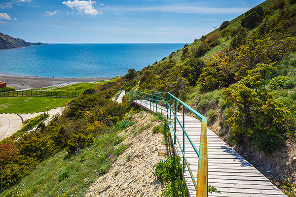 - От аэропорта Анапа на маршрутном такси № 113 до автовокзала и далее на маршрутном такси № 109 до остановки «Золотой берег».