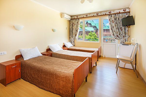 Шесть комфортабельных корпусов пансионата (класса стандарт-эконом) вмещают в себя 200 человек. Девять деревянных коттеджей (класса стандарт) вмещает 36 человек. Также в пансионате есть отдельно стоящий стеклянный коттедж.