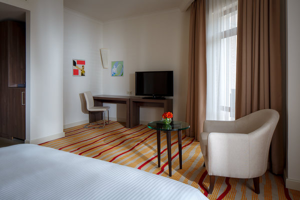 Завтраки подаются по системе «шведский стол», обеды и ужины по меню из блюд европейской и кавказской кухни. Дополнительные сервисы представлены фитнес-центром с тренажерным залом, саунами в мужской и женской раздевалке, а также несколькими конференц-залами.