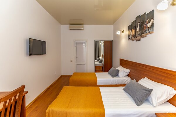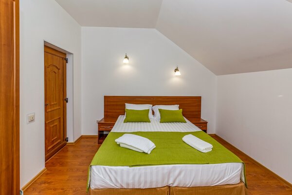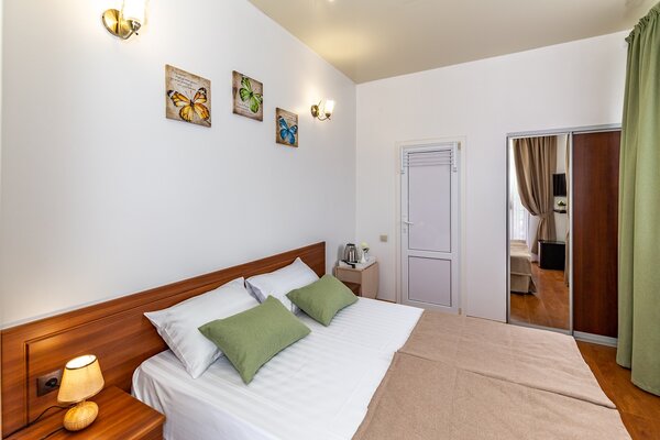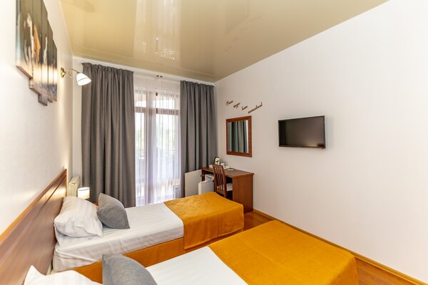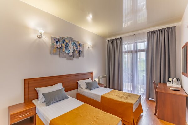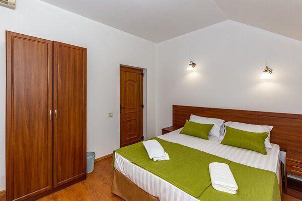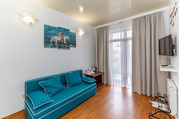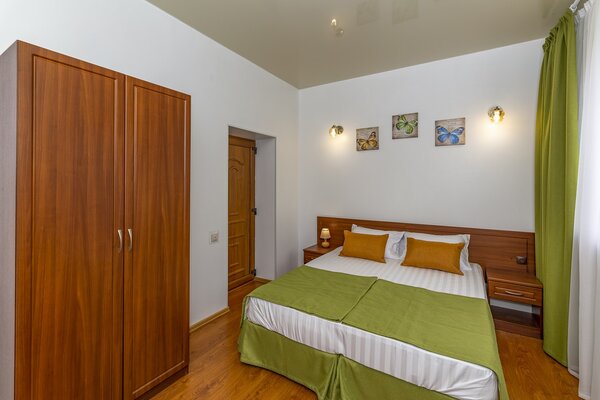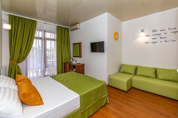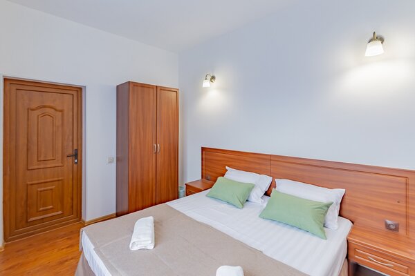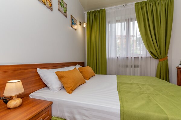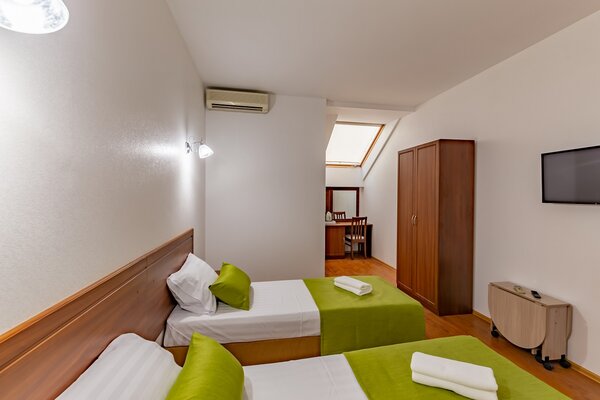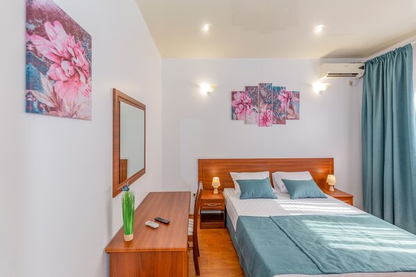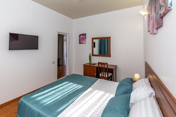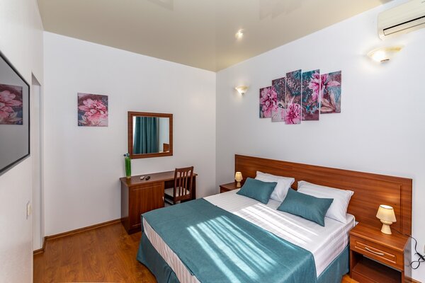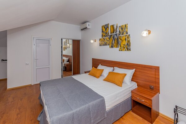 В номерах гостевого дома «Южный» созданы все условия для вашего комфорта: высокоскоростной Wi-Fi, спутниковое телевидение с функцией SMART TV, система кондиционирования и компактный холодильник. Плотные шторы блэкаут и соблюдение тишины в определенные часы гарантируют крепкий и спокойный сон. На просторной террасе с удобной мебелью вы сможете наслаждаться утренним кофе или погрузиться в чтение любимой книги под открытым небом.