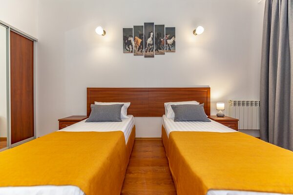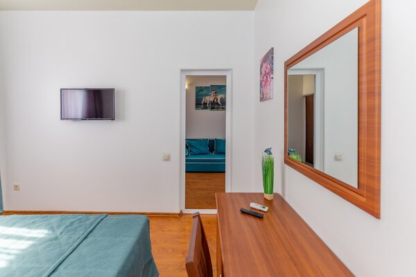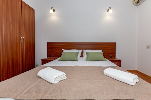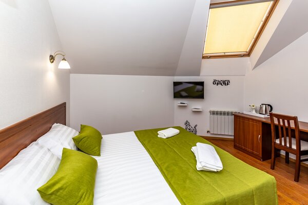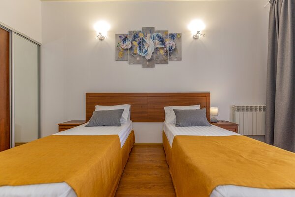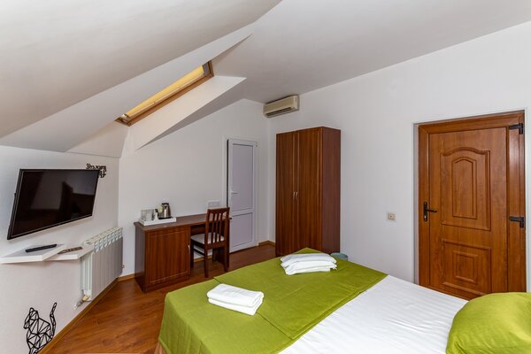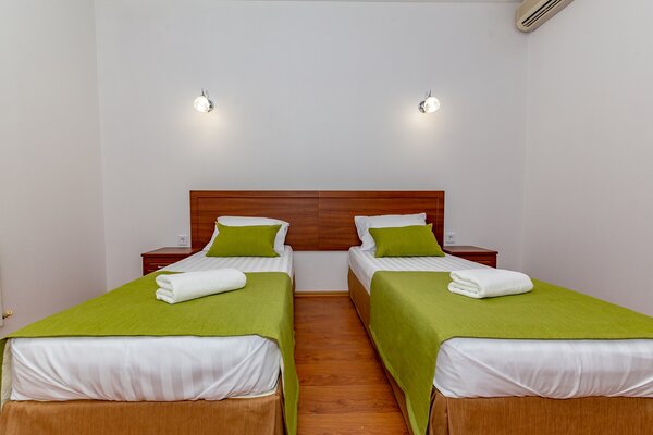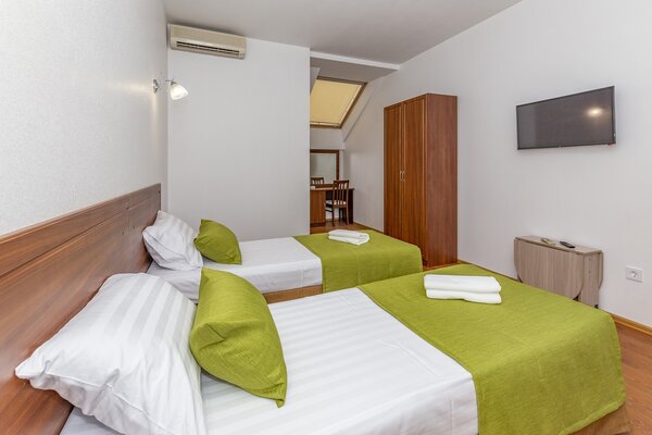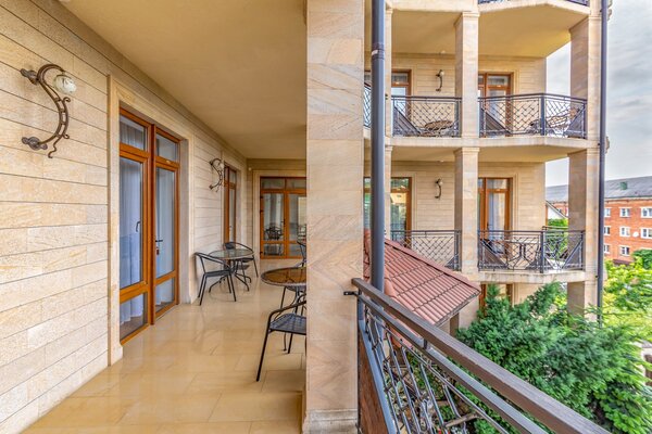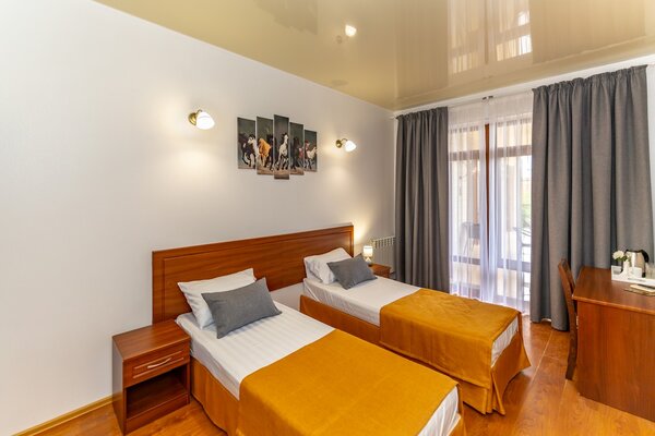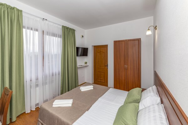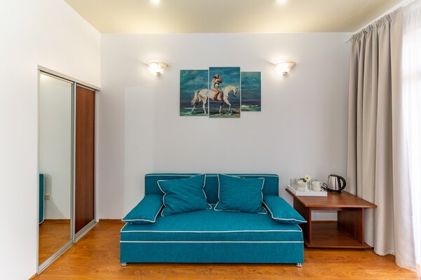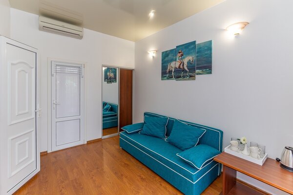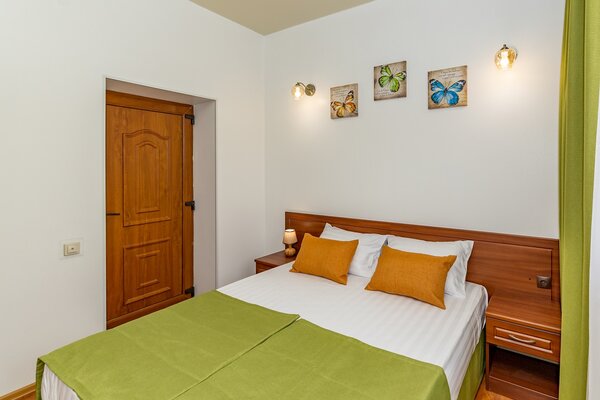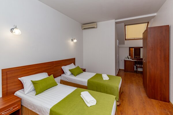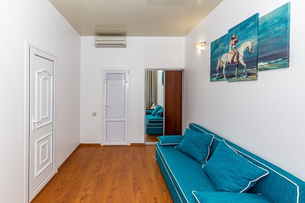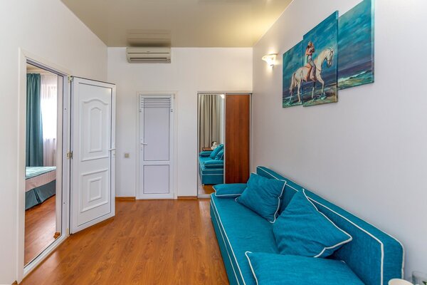 В номерах гостевого дома «Южный» созданы все условия для вашего комфорта: высокоскоростной Wi-Fi, спутниковое телевидение с функцией SMART TV, система кондиционирования и компактный холодильник. Плотные шторы блэкаут и соблюдение тишины в определенные часы гарантируют крепкий и спокойный сон. На просторной террасе с удобной мебелью вы сможете наслаждаться утренним кофе или погрузиться в чтение любимой книги под открытым небом.