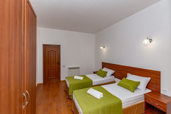 Возможно проживание с детьми от самого раннего возраста. Дети до двух лет размещаются бесплатно — предоставляется кроватка-манеж, постельные принадлежности, а также стульчик для кормления.