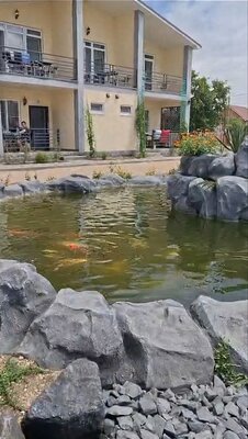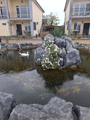 На территории базы есть пруд с разноцветными рыбками, черепахами и уточками. А ещё можно познакомиться с кроликами, курочками.