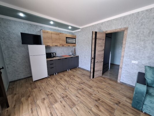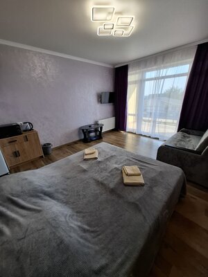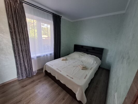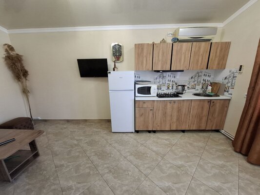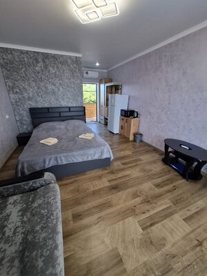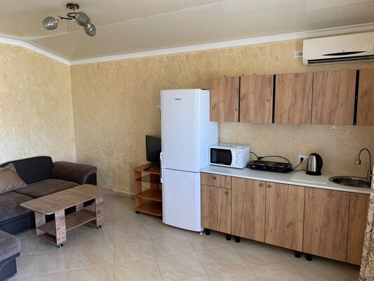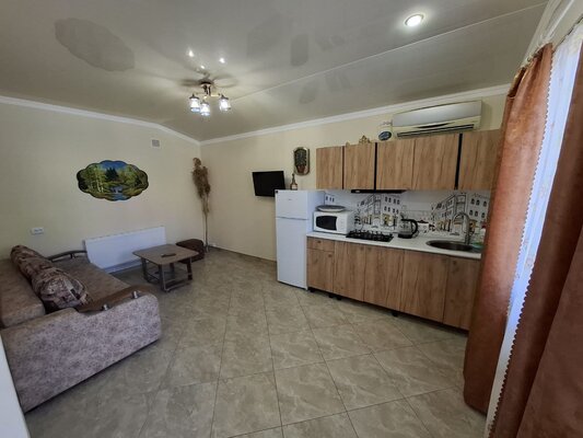 К вашим услугам комфортабельные номера, оборудованные всем необходимым для приятного отдыха: кондиционер, плита, микроволновая печь, холодильник, санузел, посуда и удобная мебель. Для удобства гостей предусмотрена стиральная машина и утюг, а для тех, кто предпочитает готовить на свежем воздухе — общая летняя кухня.
